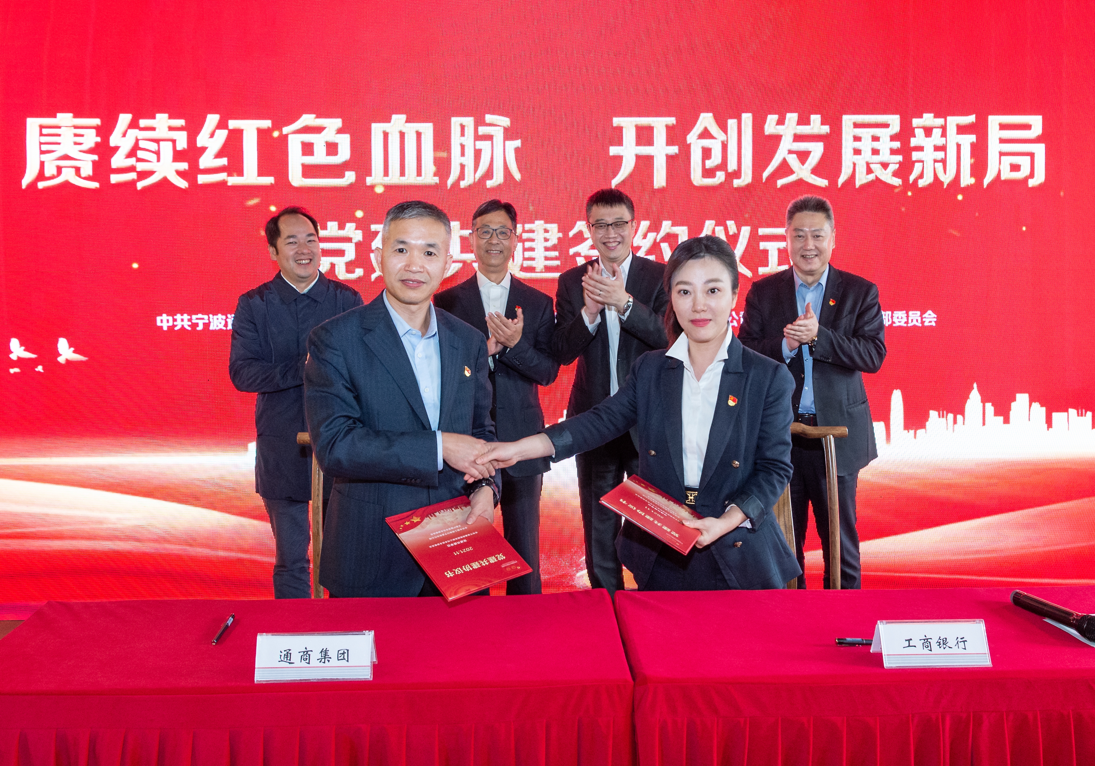 会上,宁波bet3365官方亚洲版集团本级党支部与工行宁波市分行公司大客户中心党支部签订了党建共建协议并举行了授牌和赠书仪式。宁波bet3365官方亚洲版集团领导班子成员梅旭辉、楼松松,工行宁波分行领导陈霄以及相关支部全体党员参加了学习和共建活动。